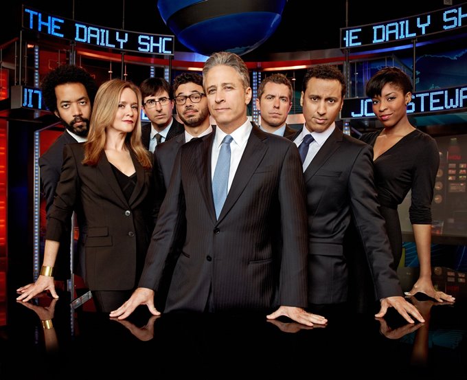 Mandvi (second from right) shot to larger recognition through his role as the satirical “Senior Muslim Correspondent” on The Daily Show with Jon Stewart.