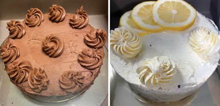 Each cake is baked using almond flour, organic coconut flour, organic coconut oil, honey, organic lemon juice, and organic chocolate—you can’t tell the difference! Because the cakes don’t have any preservatives, they are sold frozen. You can simply store them in the refrigerator for up to eight days or in the freezer for up to six months.