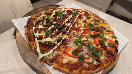 [Left] The Butter Chicken Pizza marries Indian flavors with an Italian concept.