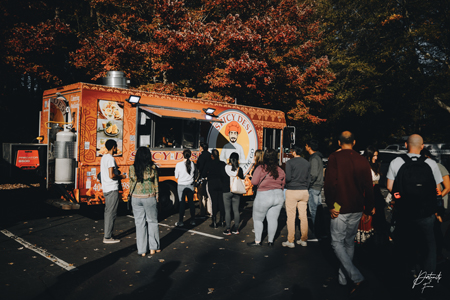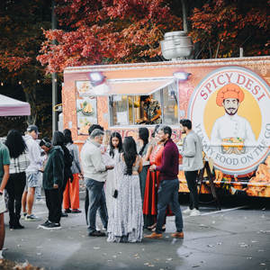 [Left] Long lines at the Spicy Desi Food Truck.