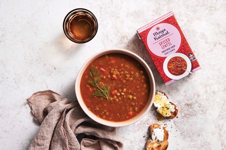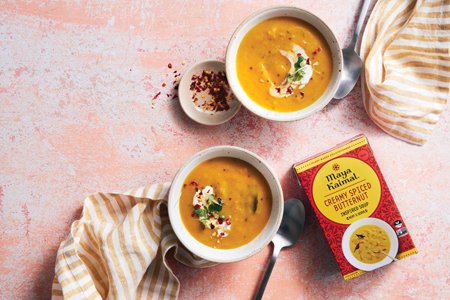 New York-based Maya Kaimal’s ready-to-eat Indian-inspired soups that simply need to be heated on the stovetop or in a microwavesafe container.