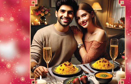 Think about how to present your dinner artfully this Valentine's Day. You could simply garnish it with herbs and edible flowers and serve on elegant plating. Or, if you want to get more creative, try using red-colored foods such as beetroot tikki, pomegranate salad, or red lentils. Rose-based mithai like gulkand barfi, rose sandesh, and rose malai laddoo can be shaped to look like rose petals.