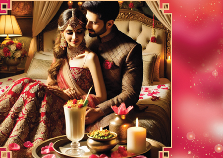 You have probably heard of or seen aunties leaving the bridegroom a glass of hot milk infused with sugar and crushed almonds on his wedding night. Did you ever wonder how this tradition came about? Some say that milk, sugar, and honey are ingredients in most Kama Sutra aphrodisiac recipes. End your meal with homemade kheer and rose milk cake, or serve a shot glass of warm haldi-doodh, the traditional recipe of milk infused with turmeric, along with the dessert. It will also help you digest the meal more easily.