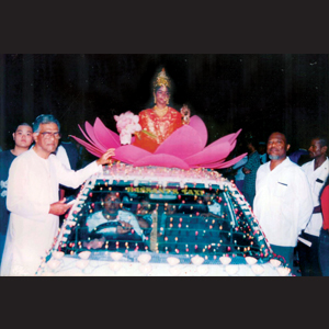 [Left] The late Pandit Reepu Daman Persaud (L), former Minister of Agriculture and Parliamentary Affairs, founded the Guyana Hindu Dharmic Sabha (GHDS) in 1974, when he also started the tradition of the Diwali motorcade, which has grown to become one of Guyana’s most prominent cultural events.