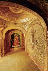 An alcove showing a rich wall adornment in the honeymoon chamber of Qila Mubarak