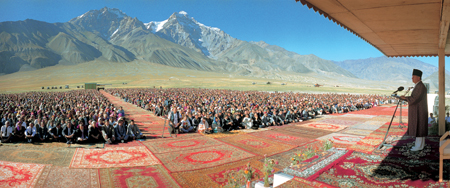 Addressing members of the Ismaili community in the Bartang Valley in Tajikistan 1998. Following the establishment of formal direct contact with the Imam, these remote populations benefited from humanitarian support and the pioneering initiatives of the AKDN. (Photo: Zahur Ramji)