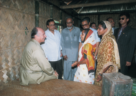 [Left] Visiting a microfinance project in Bangladesh, 1993. (Photo: Shehzad Noorani).