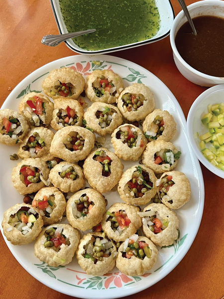 Yes, that’s the magic of this wildly popular snack! Described by Britannica as “a hollow, crispy-fried puffed ball filled with potato, chickpeas, spices, and flavored water,” the emotion attached to this chaat re-mains indescribable.