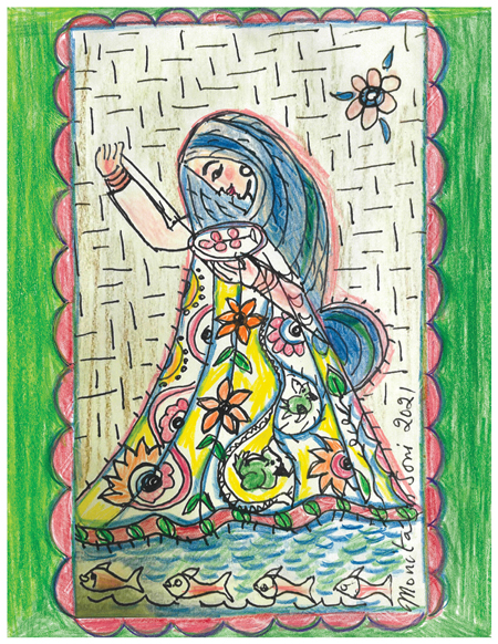 Mother made several small razaais (quilts) for her family, and hand-stitched several pure white muslin lihaafs (covers) for them. She stored them in a huge fiveby- five feet galvanized iron trunk. Each family member had their own razaai with their initials embroidered on the edge of the cover. The heaviest one was my dad’s (it took all four of us to get it out of the trunk); then came my mother’s light and fluffy one, with an aroma of roses and jasmine; then mine, with blue birds; and my sister’s quilt with dolphins.