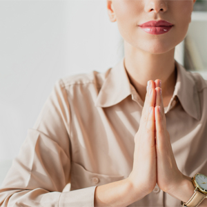 The term namaste is derived from Sanskrit, and is a combination of the word namah and the second person dative pronoun, te, in what linguists call its enclitic form. Namah means “bow”or “obeisance,” and te means “to you.” The namaste sees and adores the divine in every person, and is therefore an act of both humility and spiritual bonding.