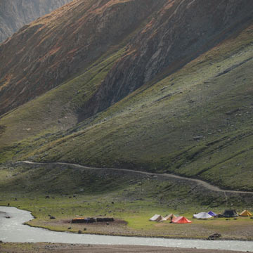 1. (Left) A nomadic camp sits along the banks of the Dras River. Over the mountain peaks lies the official Line of Control administered by Pakistan and India, a contested border and site of the Indo-Pakistan war of 1999. Many shepherd communities have lost grazing territories because of the access limitations imposed by the two governments.