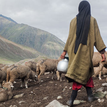 4. Ali with the help of his three brothers controls the outward movement of their herd of 3,000 sheep, making sure that no sheep move beyond their control during an ascent into the higher grazing areas in Dras. Ali and his three brothers work as a team, taking on dedicated roles throughout their ascent and descent which often is upwards of 2,000 meters.