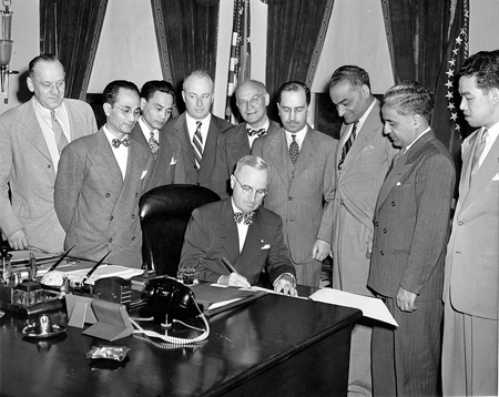 The Luce-Celler Act, besides offering naturalization, allowed 100 Indians and 100 Filipinos to immigrate every year. Those were modest numbers, to be sure, but it was nevertheless a welcome if partial opening of the Asiatic Barred Zone, which lasted 35 years, from 1917 to 1952. When Truman signed the 1946 bill, there were only about 4000 Indians living in the U.S.