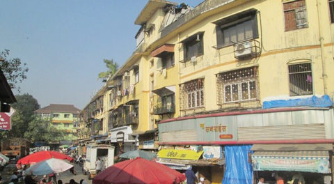 (Right) A chawl in Mumbai.