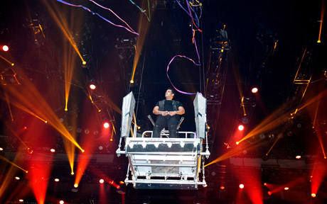 • The grand entries of the stars befitted their top billing. Elevated on platforms high up in the arena, and slowly “flown” across the length of the place, Salman Khan and Katrina Kaif, whose solo entries were at separate times, both seemed like celestial stars in the heavens while thousands of “earthlings” below were veritably worshiping them with a crescendo of cheers and swoons, and some with just agape faces of wonder.