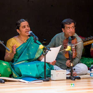 Subhashini Krishnamurthy, as she is known, is a software engineer by profession and works for an investment research firm. She holds a Bachelor’s degree in Electronics and Communication Engineering and a Master’s degree in Computer Science from the University of Florida. She is proficient both in veena and vocal music. Her first guru in vocal was her mother, Geetha Krishnamurthy. Later, Subhashini was tutored by Meena Subramanian, a renowned teacher and a disciple of the illustrious singer, M. L. Vasanthakumari. Subhashini humbly dedicates her talents in veena and vocal music to her grandmother, mother, and her teacher.