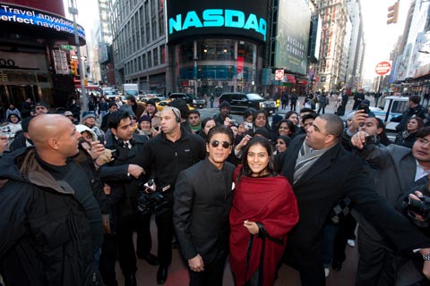 The stars come calling: Shah Rukh Khan and Kajol at NASDAQ in New York.