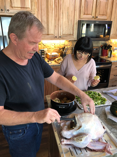 [Right] Celebrating her American citizenship, acquired earlier this year, in March.[Left bottom]“Making my first Thanksgiving dinner with my German- American father-in-law. Turkey, stuffing, pie—the classics I grew up watching in Hollywood movies.”