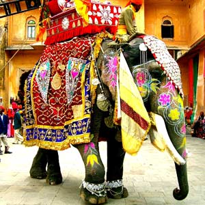 | Decorated elephants are always a treat for foreigners. | Rajasthani folk musicians entertain the guests. |