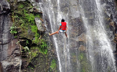 (Left)Waterfall rappelling at Neer Garh waterfalls