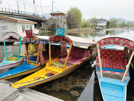 [Left] Around Dal are two must-see Mughal Gardens—Nishat Bhag and Shalimar. Both are terraced gardens built by the Mughals using Persian principles of cascading waterfalls and fountains. With the Zabarwan mountains as a backdrop, these gardens are noteworthy for their 400-year-old chinar and willow trees, not to mention the impressive architecture. Beginning in March, flowering trees like almond, sand cherry, and magnolia line each walkway. That’s also the season for tulips, exquisitely displayed in the seven-terraced Indira Gandhi Memorial Tulip Garden, which has around 48 varieties of tulips.