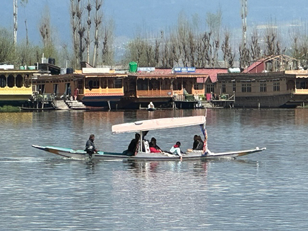 In the heart of the city lies Dal Lake, an urban lake that covers nine square miles. Its shoreline is flanked by a boulevard lined with gardens, houseboats, shikaras (wooden boats), and hotels. British Raj officers were not allowed to buy land in Kashmir, so they circumvented the rule by building residential houseboats on Dal Lake. A popular tourist activity in the summer is to hire shikaras and watch floating islands that blossom with lotus flowers. They will also see fishermen digging out lotus stems, a local delicacy.