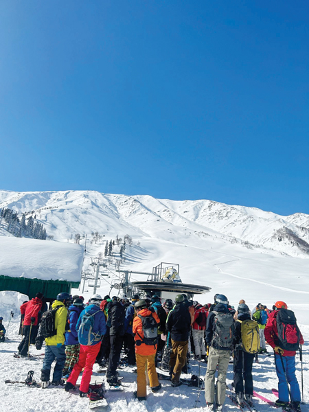 Mehmood Ahmad Lone operates Gulmarg Adventure Academy and K-Line Adventures. He says the best time to visit Gulmarg for skiing is February and March. For beginners, his company provides ski instructors. For advanced backcountry skiing, he provides pro-level ski guides at a reasonable price for a party of three. They also arrange snowmobiles, ATVs, snow cycles, ski touring, airport pick-ups, hotels, and sightseeing.