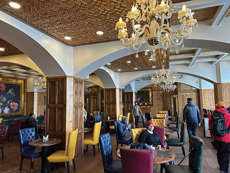 [Left] Rishis and Sufis have long found refuge in the Himalayas. Lord Shiva revealed the secrets of life and eternity to his wife Parvati at the Amarnath shrine, now a popular pilgrimage site. [Right] Visitors can enjoy a good meal in one of Gulmarg’s restaurants.