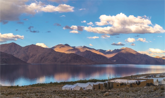 (Left) Another view of Pangong Tso, or Pangong Lake.