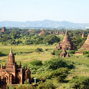(Left) The famous pagodas of Bagan, Myanmar.