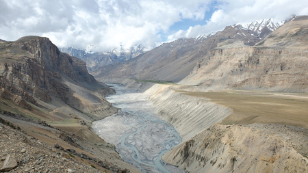 Spiti river cuts through the Spiti alley, a rain-shadow area here forests give way to scrub, and the treeless slopes look even more dramatic as they rise into the sky. (Photo: Ravi rabhakar)