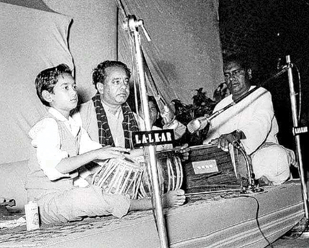 who arrived to pick him up was astonished to find a young boy in a school uniform with a tabla set, introducing himself as the performer for the music festival. This experience of performing before an audience of over 10,000 music lovers was an early testament to Hussain’s prodigious talent. When he returned to Mumbai, his mother, though concerned, was moved by his dedication when he presented to her the 200 rupees he had earned from the Patna performance.
