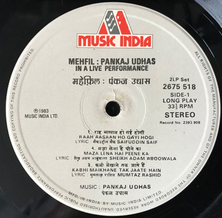 In contrast to the spiritual heights of Sufi-inspired odes to the divine, Udhas’ brand of ghazals was more about earthly lovers and about spirits that are consumed in crystal glasses. The maikhaana, a tavern where patrons come together to romanticize loss, longing, love, and ecstasy, is a recurring theme in his ghazals. It is a place where emotions flow as freely as wine, both of which can cause one to become unpredictable, addicted, and all-consumed. A maikhaana is where one freely indulges in the human tendency to seek solace and escape from life’s hardships through intoxication.